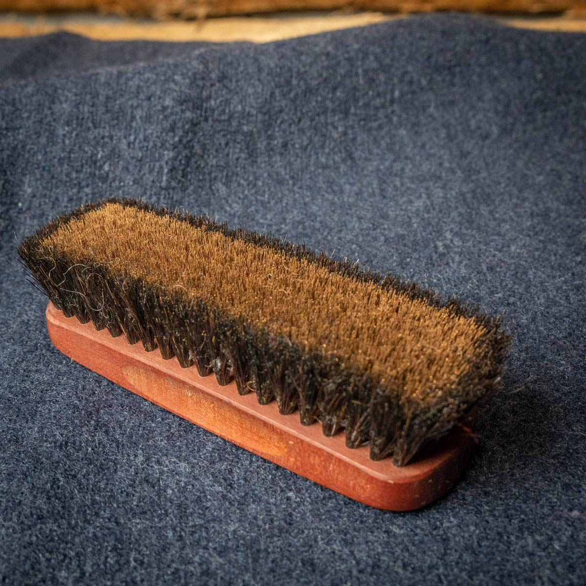 Wolle ist sehr pflegeleicht. Die meisten natürlichen Verschmutzungen lassen sich leicht ausbürsten und ein Wäsche ist in vielen Fällen nicht nötig. Sehr gut geht das natürlich mit einer dafür vorgesehenen Kleiderbürste. Neben der Edel-Variante, die extra für uns in England aus Schwarzwildborsten, Birnbaum und echtem Büffelhorn gefertigt wird, haben wir jetzt auch dieses schöne aber etwas schlichtere Modell im Programm.