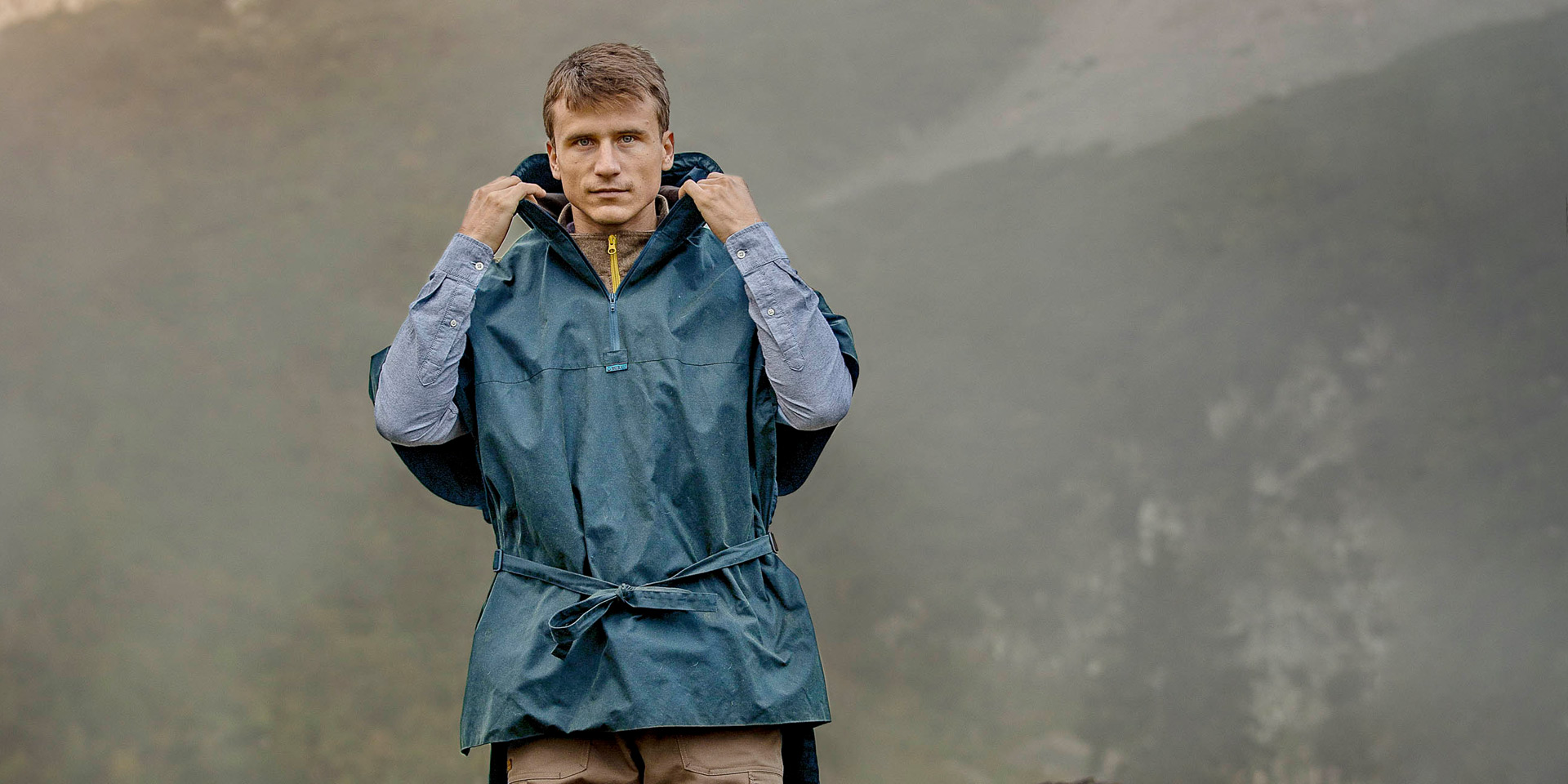 Regencape „Wassermann“ aus Waxcotton, Petrol