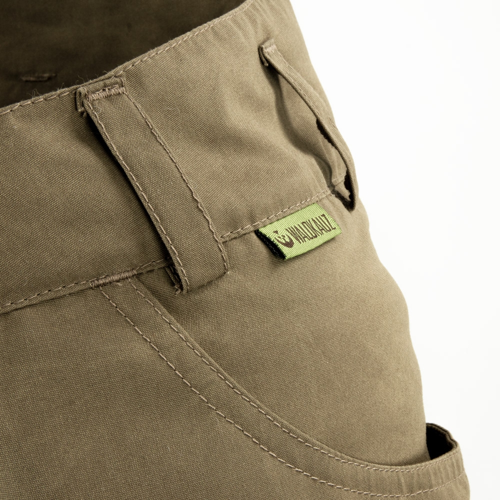 Das ist mal ein starkes Stück! Unsere 3-Jahreszeiten-Jagdhose „Rauhbein“ wird aus einem 216g/m2 starken Polycotton gefertigt, der durch eine starke (und PFC-freie) Wachs-Imprägnierung zu einem stabilen und widerstandsfähigen Hosenstoff wird und seinen Träger durch Frühjahr, Sommer, Herbst und auch die wärmeren Wintertage bringt. Der Schnitt der Hose hat die typischen aufgesetzten Fronttaschen, die doppelt gelegte und ergonomisch in Form gebrachte Kniepartie für bessere Bewegungsfreiheit sowie die innen liegende Messertasche am hinteren, rechten Hosenbein. Der ruppige Stoff macht sie nicht nur stabil und widerstandsfähig, sondern gibt der Jagdhose auch einen ganz eigenen, „raubeinigen“ Charme – daher auch der Name.