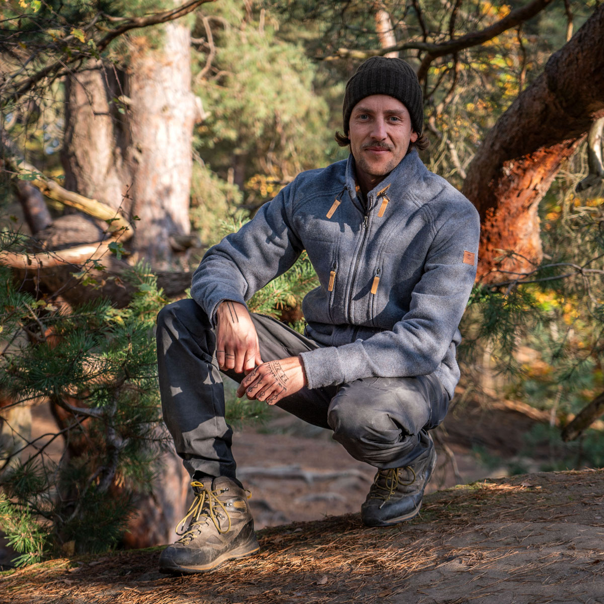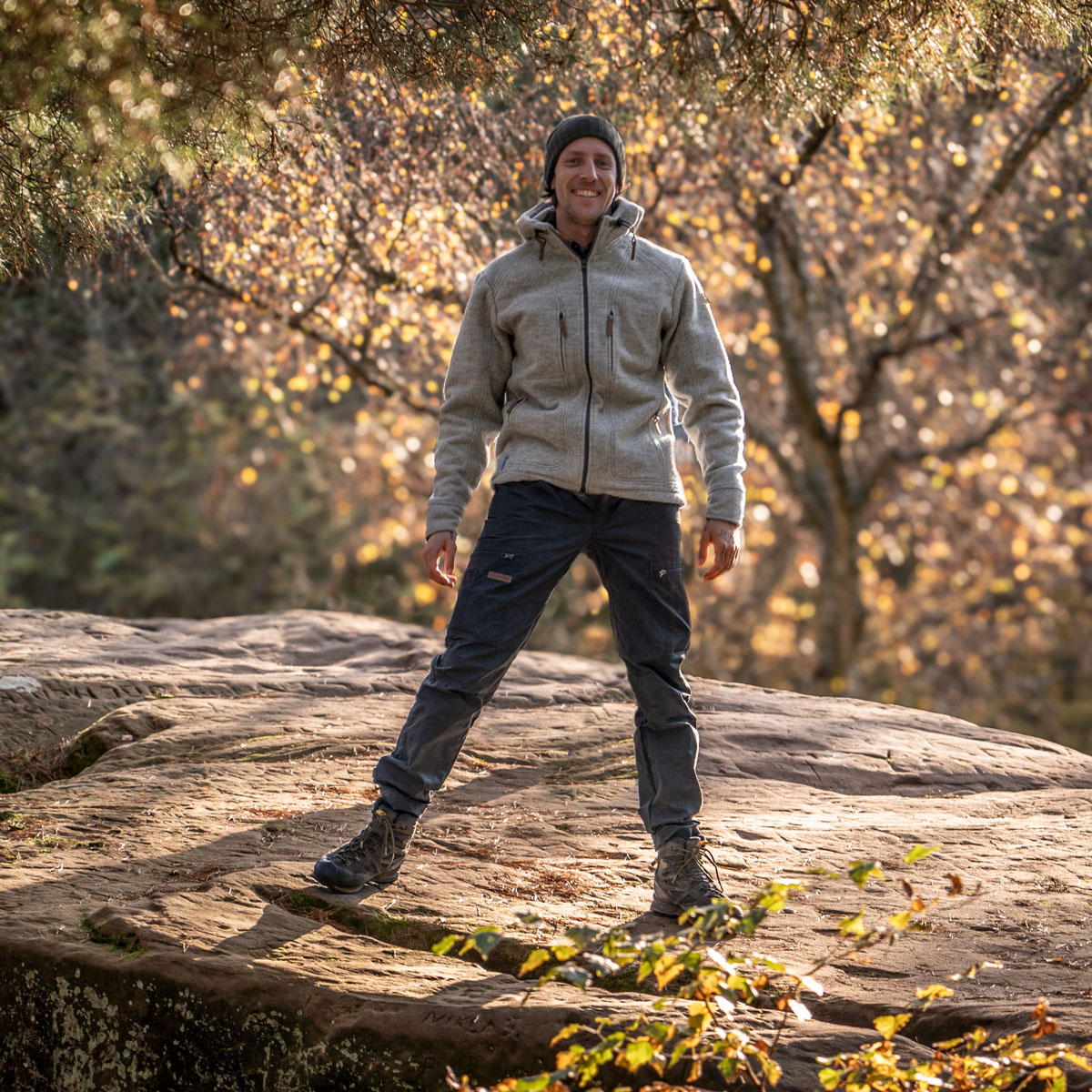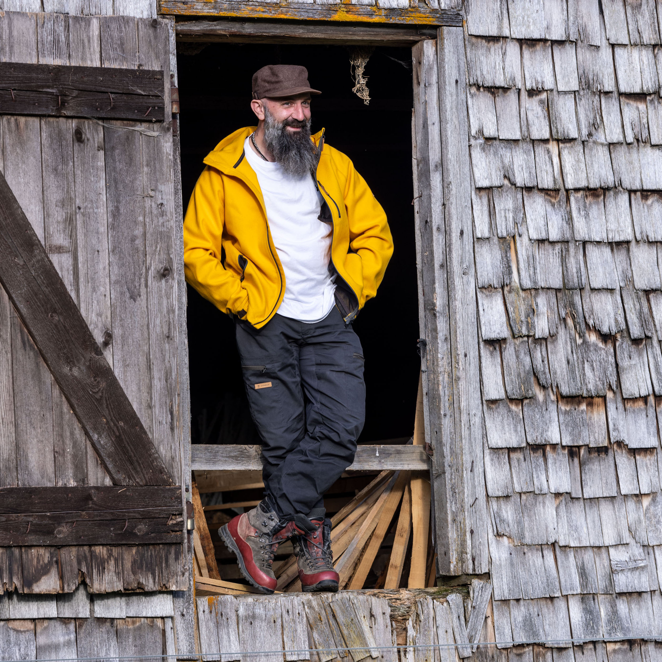 Wir haben unsere Wanderbux neu erfunden! Nach vielen Jahren in der Praxis haben wir alle Details noch mal auf den Prüfstand gestellt und eine ganz neue Generation unserer robusten aber leichten Outdoorhose entwickelt. Gerade bei Hüttentouren im unwegsamen Gelände kann man nicht genug Bewegungsfreiheit haben. Bei der Wanderbux II kommt daher wohldosiert – und nur dort, wo es wirklich einen spürbaren Effekt hat – stabiler 4-Wege-Stretch des europäischen Qualitätsproduzenten IBQ zum Einsatz. So haben wir das Maß an Bewegungsfreiheit enorm erhöht, und trotzdem die "roughe" Optik des gewachsten Mischgewebes (und damit optisch auch Ihre Alltagstauglichkeit) beibehalten können.