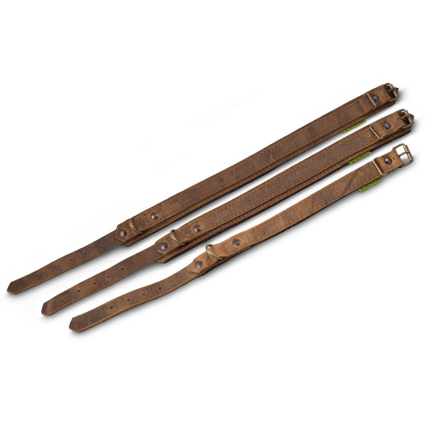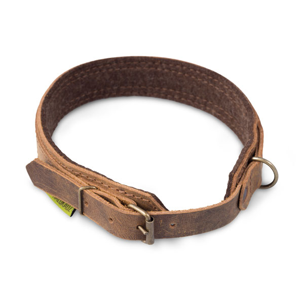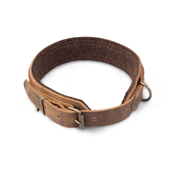 Hundehalsung aus Fettnubukleder und Wollfilz, erhältlich in drei Größen für fast alle Jagdhunderassen.