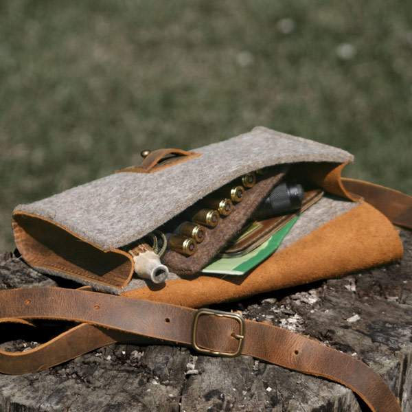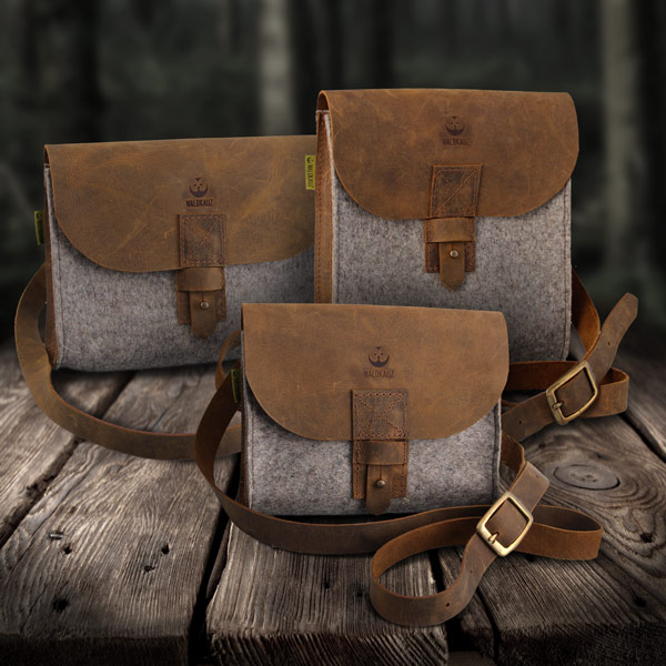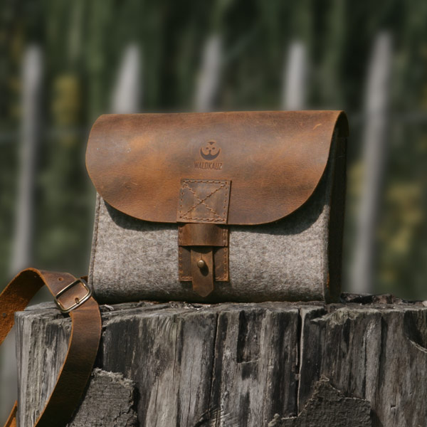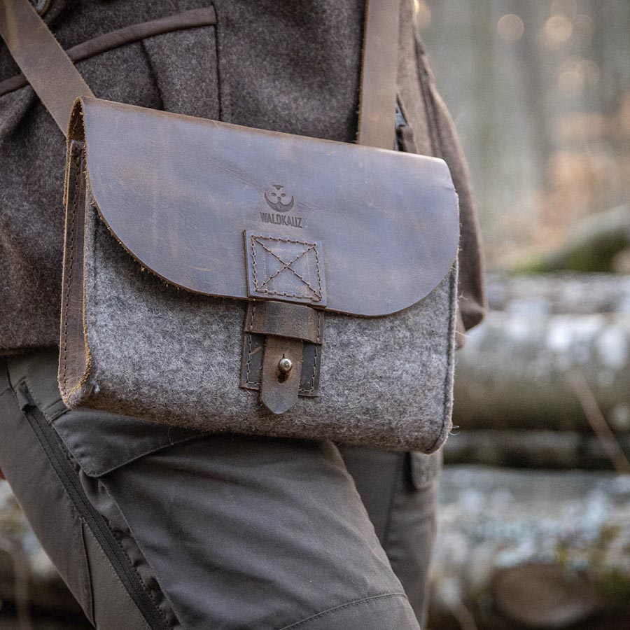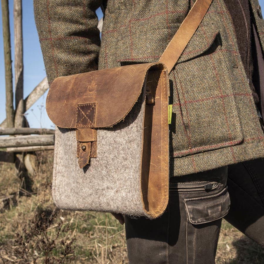Gut geeignet für den kleinen, schnellen Einsatz: Die kleinen Filz-Jagdtaschen "Drückerchen" schliessen die Lücke zwischen den Modulus Gürteltaschen und unseren normalen Umhängetaschen für die Jagd. In den Drückerchen ist nur begrenzt Platz, aber das ist auch genau Sinn der kleinen Taschen: eine kleine, leichte und kompakte Jagdtasche, die gerade mal Platz für die nötigsten Dinge hat, die man zu einem kurzen Ansitz, zur schnellen Pirsch auf den bestätigten Bock oder eben für ein kleines Drückerchen benötigt, ohne gleich mit voller Montur, Lodenrucksack oder großer Tasche loszuziehen. Auch für´s kleine Gepäck auf dem Weg zum Schießstand, beim Schüsseltreiben oder einfach für den alltäglichen Gebrauch in der Stadt eignen sie sich hervorragend. Aussen aus grauem Wollfilz und Nubukleder gefertigt, verfügt sie über ein Hauptfach und ein zusätzliches, flaches Innenfach. Der Trageriemen ist aus dem gleichen Leder und lässt sich über eine Doppelstegschnalle aus massivem Messing in der Länge verstellen. Die hochwertige Messingschnalle läuft an, wie man es von Messing kennt und bleibt nicht so "gülden"!