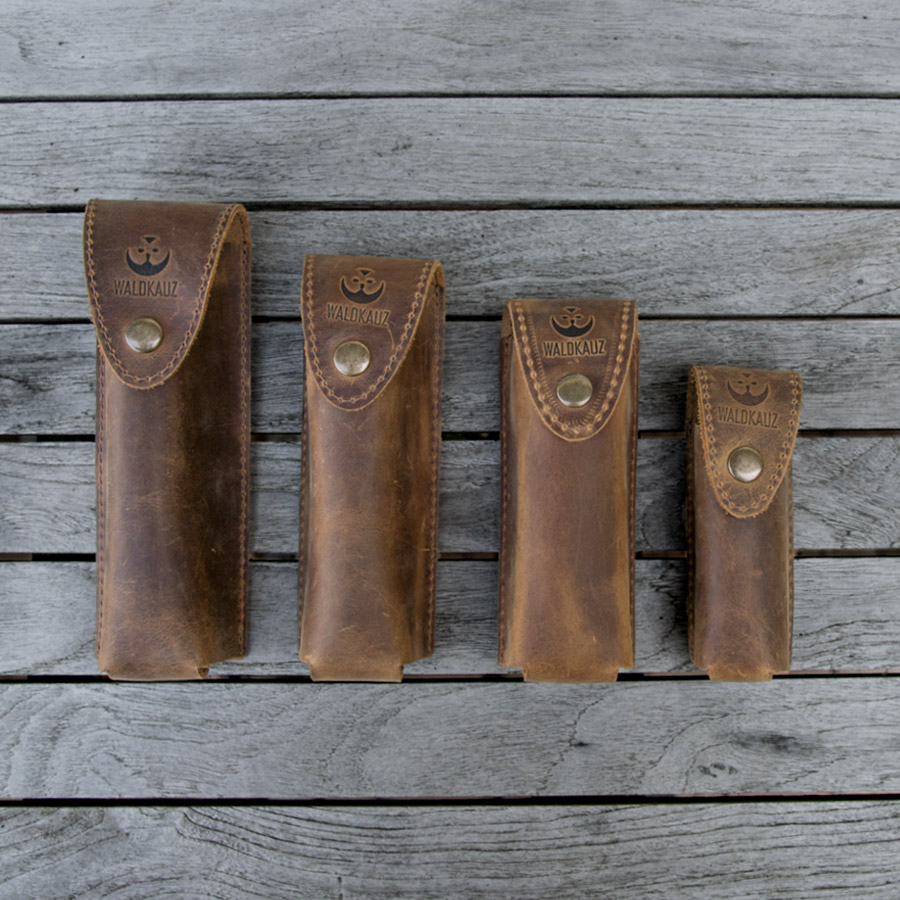 Genau dafür haben wir nun unser kerniges Gürteletui „Meister Lampe“ entwickelt. In vier verschiedenen Größen erhältlich, sorgt es für den passenden Stauraum für Ihre wichtigsten Utensilien. Ein fester Handgriff öffnet den stabilen Druckknopf, so dass Sie Ihre Taschenlampe oder das Messer auf einfache Art und Weise entnehmen können. Und ebenso wichtig, Sie können sie genauso schnell und ohne umständliche Kramerei auch wieder wegstecken.