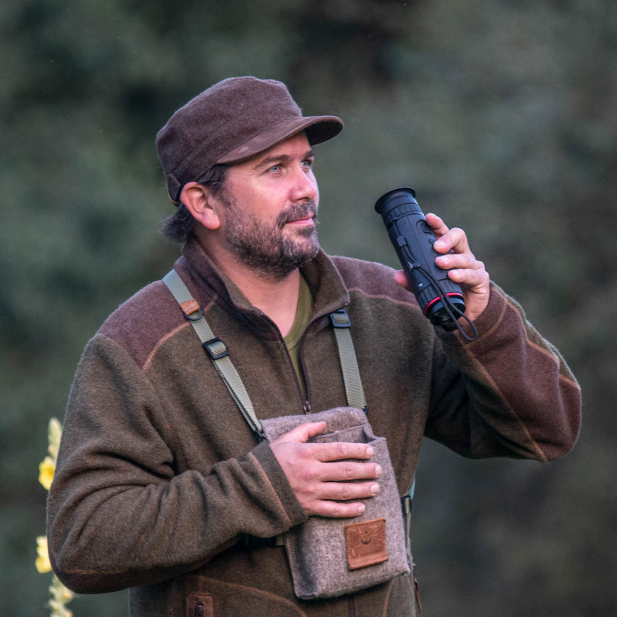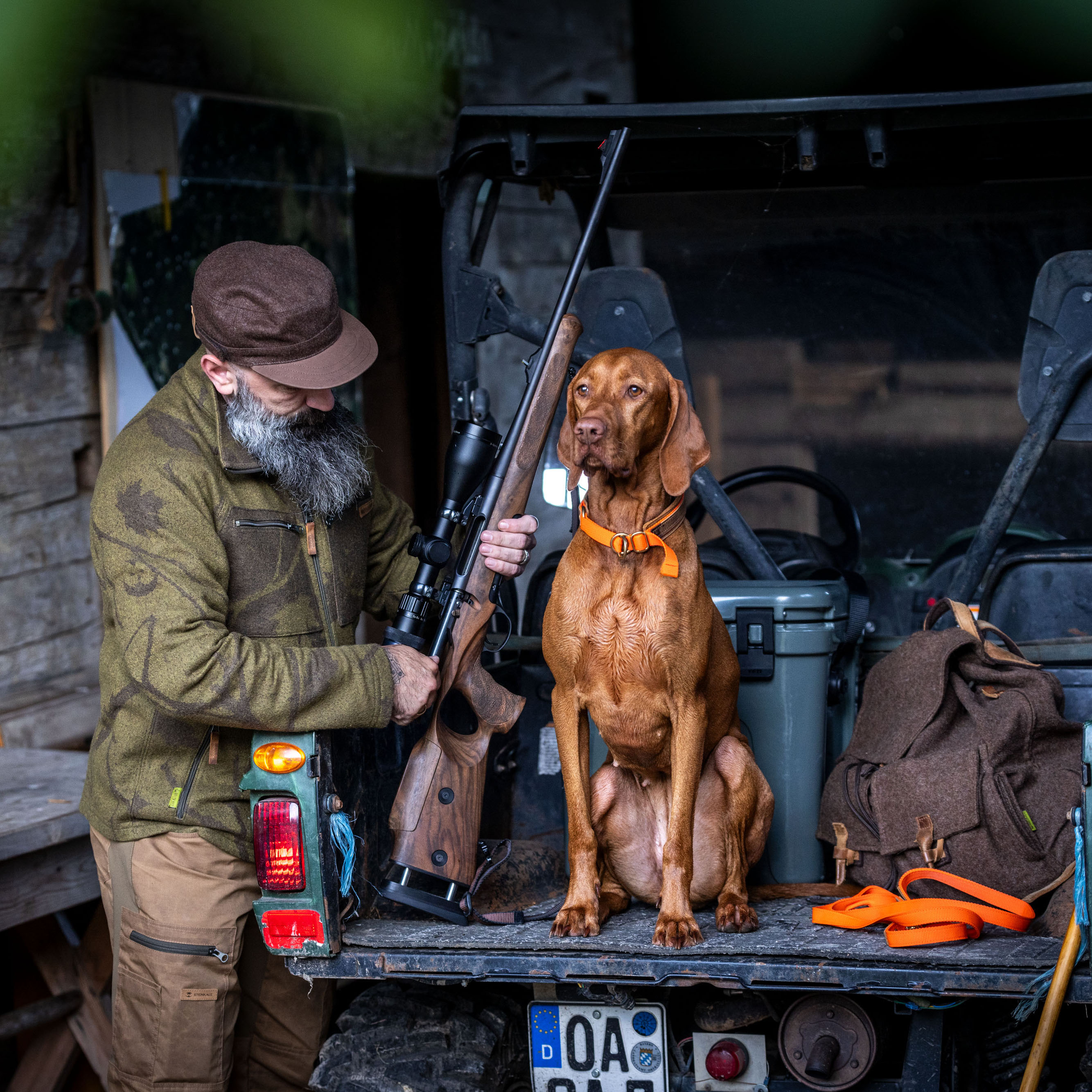 Die hervorragenden Klimaeigenschaften des Tuchlodens sind gleich dreifach sinnvoll: Er ist feuchtigkeitsregulierend, atmungsaktiv und temperaturausgleichend. Der formbare Schirm hält Sonnenstrahlen genauso gut fern, wie er Mondlicht abschattet, so dass immer ein klarer Blick durch Fernglas und Zielfernrohr gewährleistet ist.