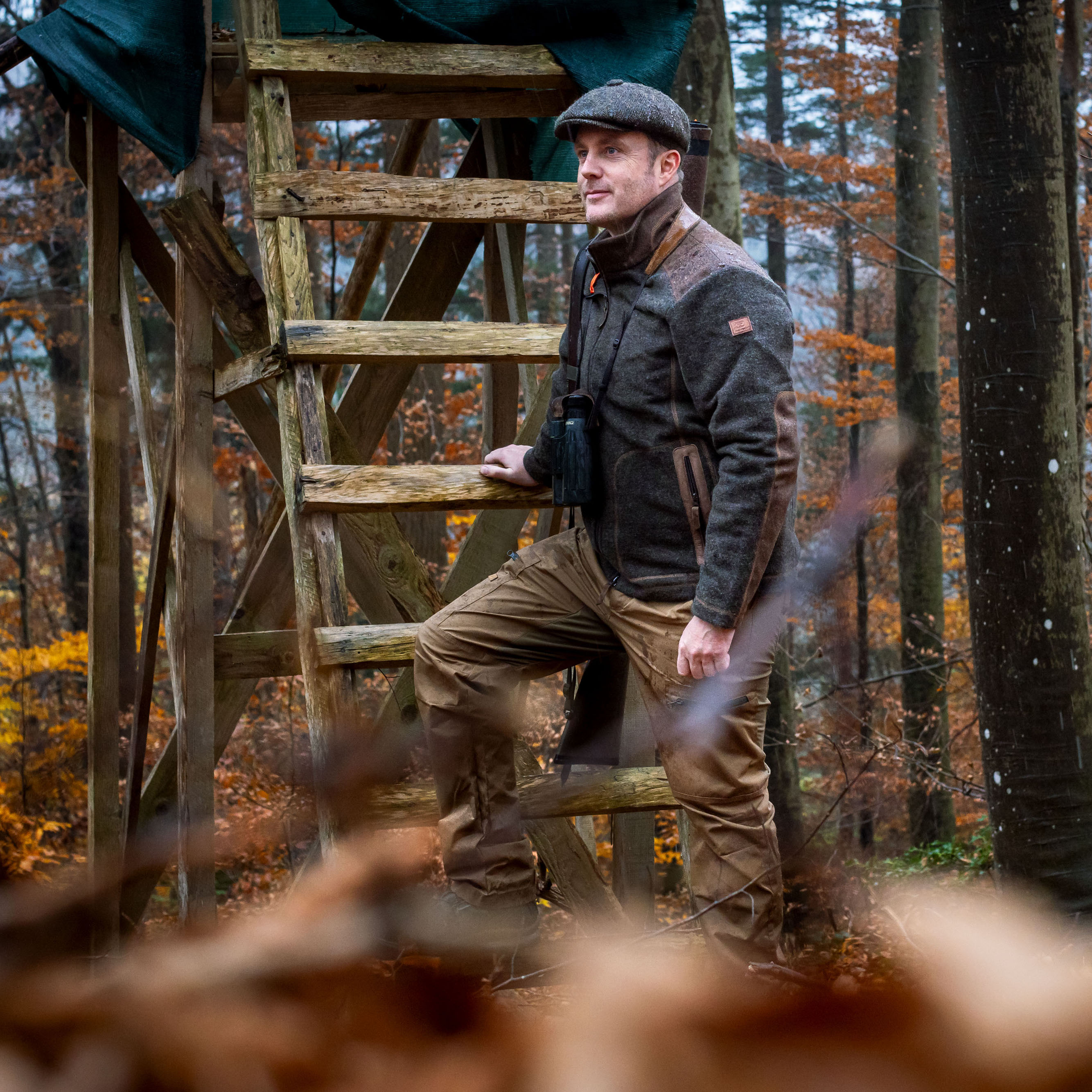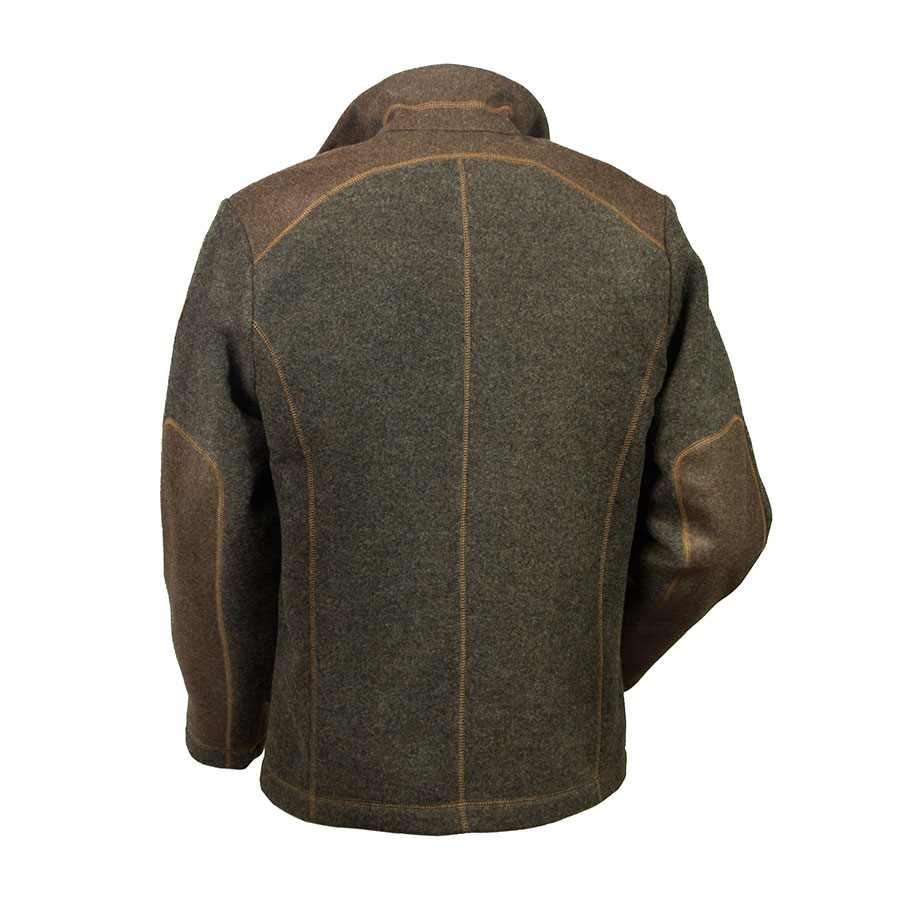 - Verstärkungen aus Loden an Schultern, Kragen und Unterarm