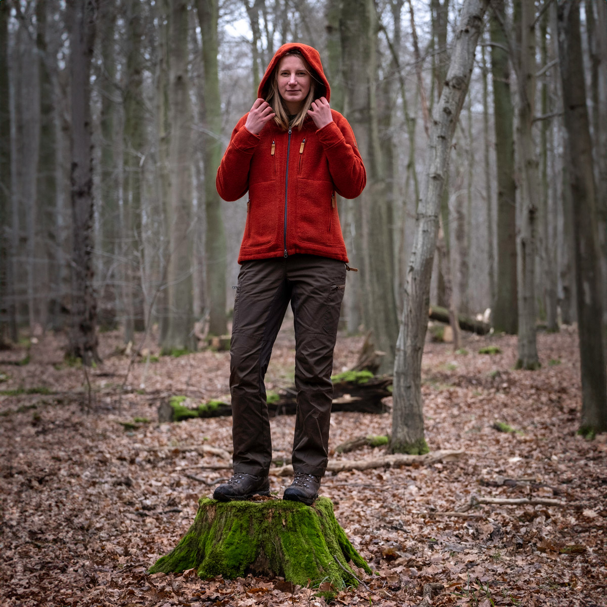 Durch die extrem guten Klimaeigenschaften des Lodenfleeces ist die Jacke sehr gut für ein weites Temperaturspektrum geeignet. Beim Wandern, Trekking oder einfach in der Freizeit hält sie warm und gleicht die Körpertemperatur im Inneren durch Aufnahme von Feuchtigkeit, eine gute Atmungsaktivität und einen guten Windwiderstand aus. Wenn im Herbst die ersten kühlen Tage kommen, beginnt die Zeit für den STEINKAUZ-Lodenfleece. Das Material bietet in vielen Situationen genug Isolation, ohne daß eine weitere Schicht darüber nötig wird. Erst wenn es richtig kalt wird, braucht es Unterstützung von außen in Form einer Winterjacke. Bis in den Frühling und auch an manchem kühleren Sommerabend ist die Kragenwally in ihrem Element.