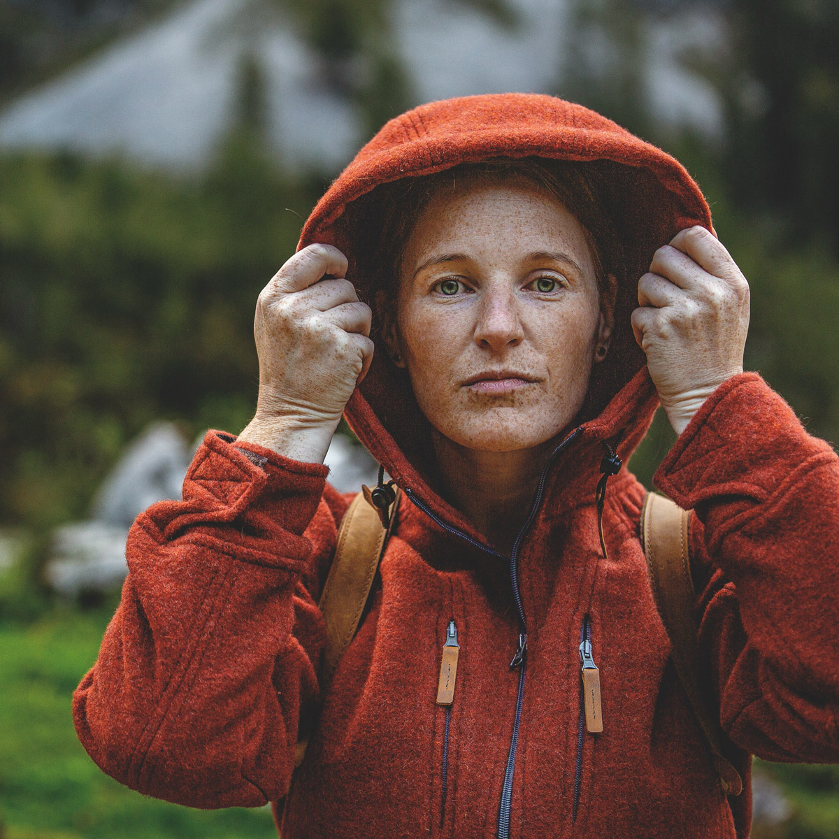 Unser Lodenfleece wird aus 100% reiner Schurwolle gefertigt, ist atmungsaktiv, wärmend und robust. Aufgrund des aufwändigen, beidseitigen Aufrauhungsverfahrens des Lodens ist der Stoff angenehm weich und hat einen hohen Tragekomfort. Das Naturprodukt Loden benötigt nicht viel Pflege: Gerüche verschwinden an der frischen Luft und Verschmutzungen läßt man trocknen und bürstet sie dann raus. Was unseren speziellen Lodenfleece aber ganz besonders macht, sind seine Klimaeigenschaften. Die dichte Webung des Doubleface-Lodens und der feine Flor auf der Oberfläche machen die Jacke nahezu resistent gegen das Eindringen von Wind – und das ganz ohne Membrane! Und genau deshalb, weil wir keine Membrane verbauen müssen, bleibt der Loden-Fleece auch noch sehr atmungsaktiv und sorgt für ein optimales Innenklima. In unseren FAQs gehen wir ausführlich auf das Thema Loden und seine Nutzung ein.