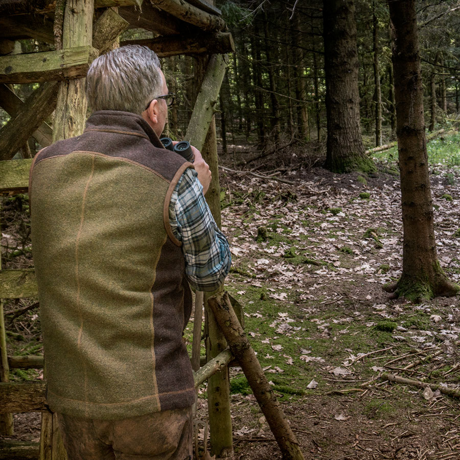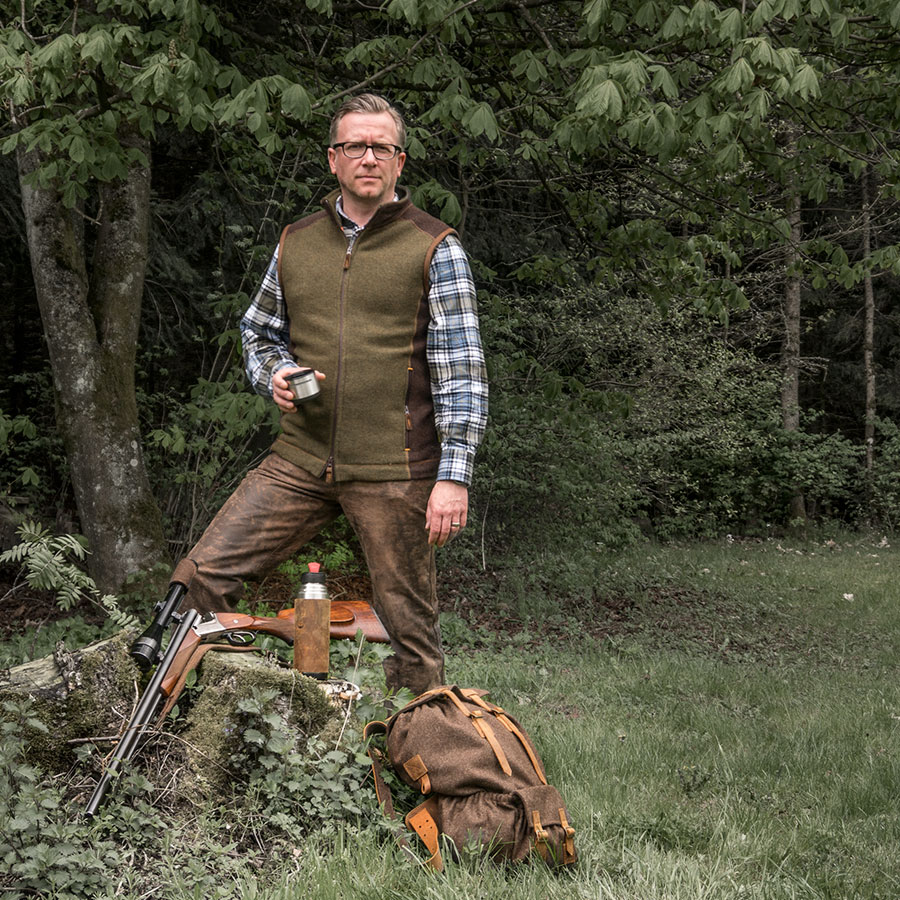 Mit unserer Waldkauz Weste „Hainrich“ haben wir ein Weste entwickelt, die genau auf die Wünsche unserer Kunden zugeschnitten ist, und zwar im wahrsten Sinne des Wortes. Denn ein sportliches, modernes Äußeres kombiniert dabei mit einem sehr angenehmen Tragekomfort unter Verwendung feiner Materialien. Farblich ist die Jacke braun auf den Schultern und den Seiten abgesetzt. Die Armlöcher sind durch Besätze aus Rind-Nappaleder robust geschützt. Unser Doubleface Loden aus 100% Schurwolle wärmt angenehm und ist von innen wie von außen flauschig weich. Als Jagdweste lässt sie natürlich eine gute Bewegungsfreiheit zu. In den beiden Taschen mit Reißverschluss bringen Sie das Nötigste unter oder wärmen einfach nur Ihre Hände darin. Über einem Hemd oder auch unter einer Jacke ist diese Lodenweste ein ideales Kombinationsstück. Ein unverwechselbares Waldkauz Produkt.