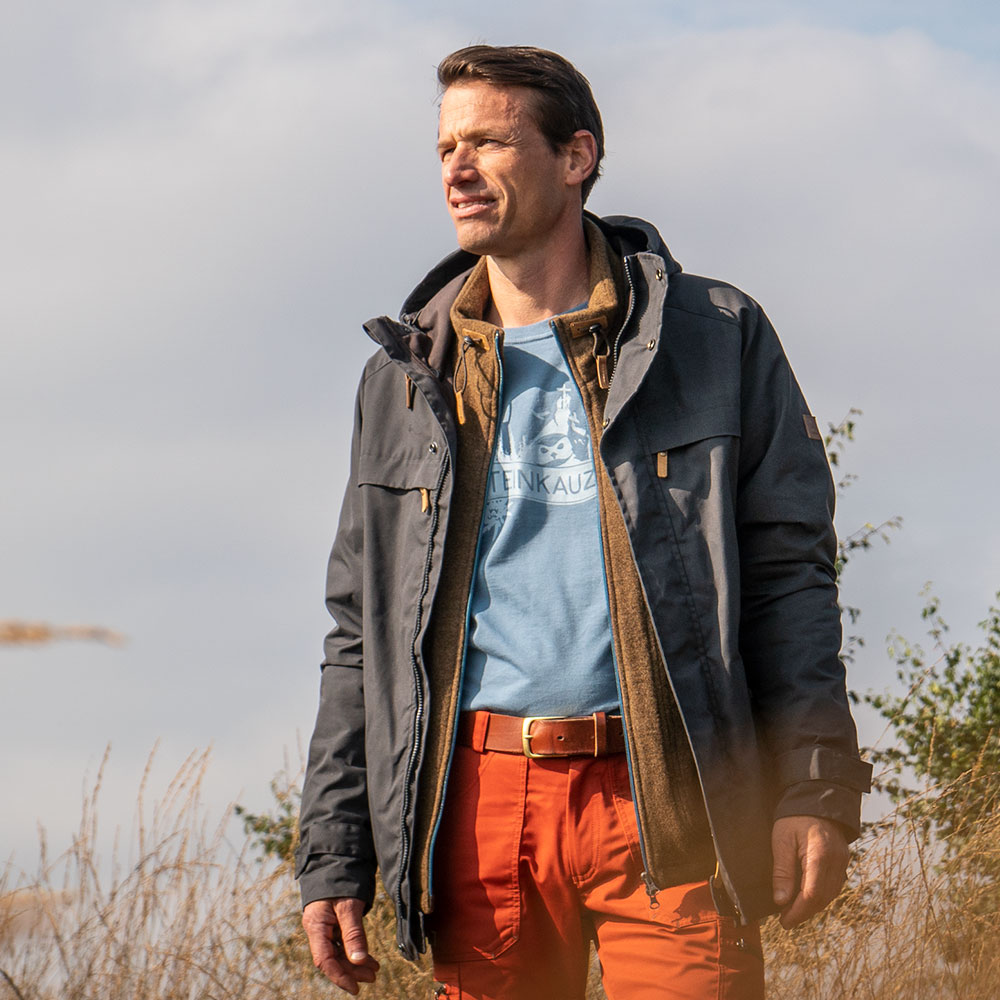 Die STEINKAUZ Outdoorjacke „Windfang“ ist stil- und materialmäßig die passende Ergänzung zu unseren Lodenjacken, -hoodies und zu unserer Ausrüstung. Da, wo die Schlechtwetter-Eigenschaften von Loden an Ihre Grenzen stoßen, bildet gewachste Baumwolle die notwendige Außenhaut, um Regen draußen und gutes Klima drinnen zu halten. Bei leichter Kleidung wirkt das Material eher kühlend. Mit einer Lodenschicht oder einem warmen Wollpulli als Unterschicht hält sie dagegen sehr gut die Wärme im Inneren.Die Oberfläche des Waxcotton verändert sich bei Benutzung recht schnell und bekommt bald einen schönen Vintage-Effekt. Sollte die Wachsung mit der Zeit abnehmen, kann man die Jacke beliebig oft nachwachsen.