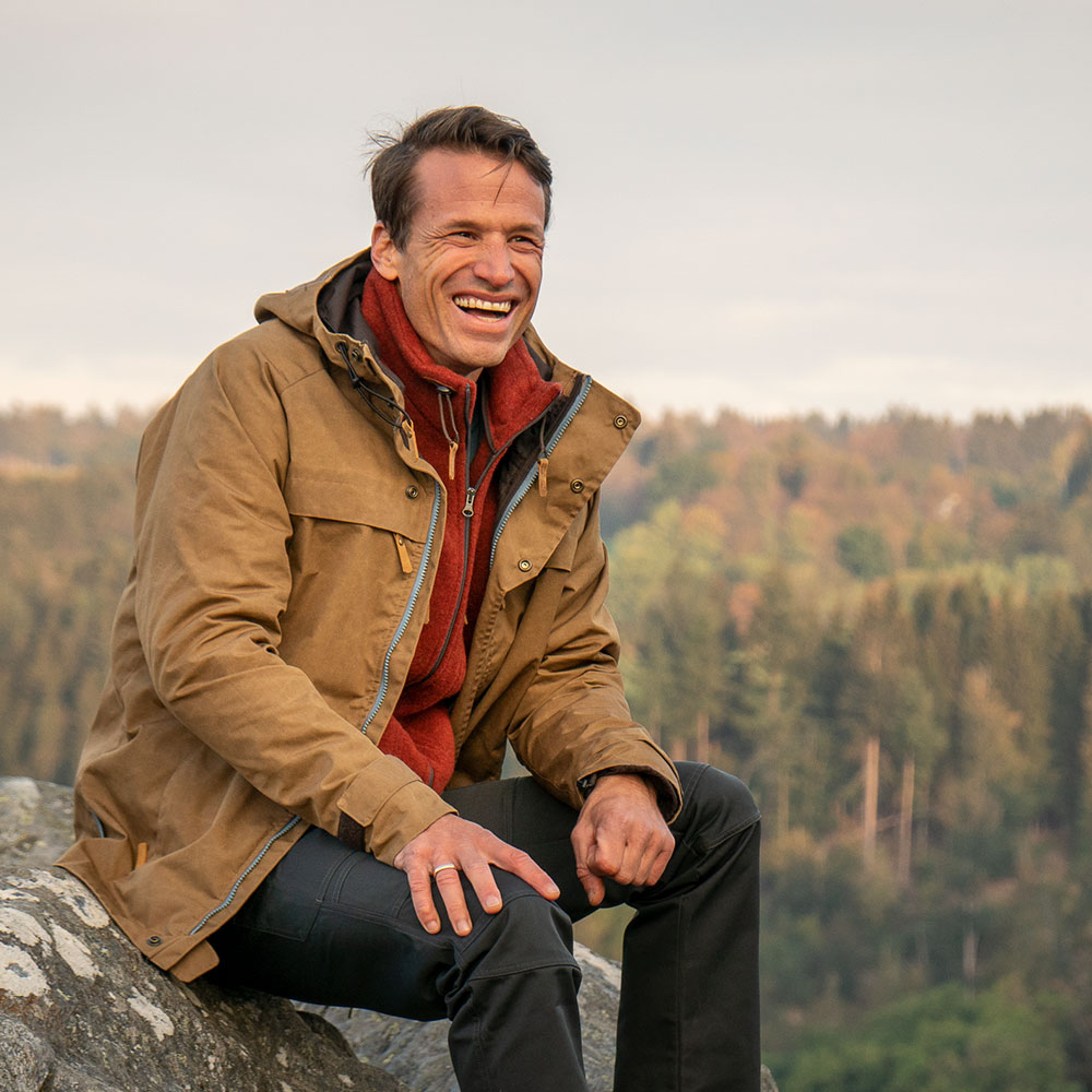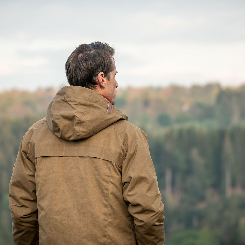 Die STEINKAUZ Outdoorjacke „Windfang“ ist stil- und materialmäßig die passende Ergänzung zu unseren Lodenjacken, -hoodies und zu unserer Ausrüstung. Da, wo die Schlechtwetter-Eigenschaften von Loden an Ihre Grenzen stoßen, bildet gewachste Baumwolle die notwendige Außenhaut, um Regen draußen und gutes Klima drinnen zu halten. Bei leichter Kleidung wirkt das Material eher kühlend. Mit einer Lodenschicht oder einem warmen Wollpulli als Unterschicht hält sie dagegen sehr gut die Wärme im Inneren.Die Oberfläche des Waxcotton verändert sich bei Benutzung recht schnell und bekommt bald einen schönen Vintage-Effekt. Sollte die Wachsung mit der Zeit abnehmen, kann man die Jacke beliebig oft nachwachsen.