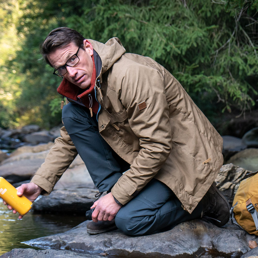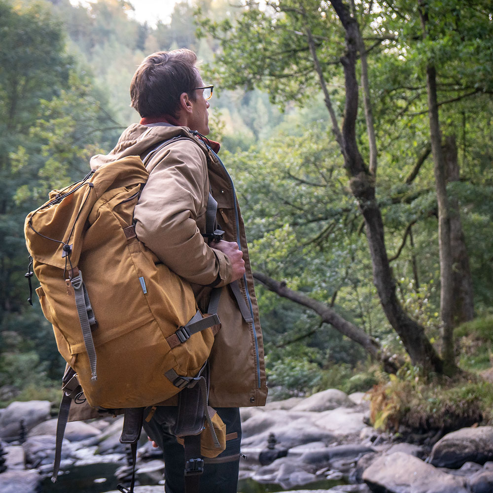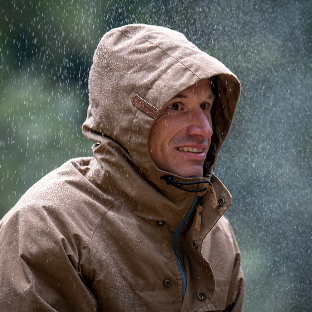 Beim STEINKAUZ gibt es zwei Jacken, die auf dem selben Schnitt basieren: Während die REGENSEGEN die „Heavy Duty“-Variante darstellt, ist die WINDFANG der leichtere Allrounder. Während der Entwicklung unseres neuen Jackenmodells haben wir bei der Materialfrage festgestellt, dass es zwei Lager gibt, die beide Ihre Argumente hatten und denen wir in beiden Fällen folgen konnten. Die Verfechter des Heritage-Lagers waren für den schweren und stark gewachsten Waxed Cotton aus 100% Baumwolle in britischer Manier (dort kommt unserer übrigens auch her). Die Vertreter der moderneren Richtung hatten Ihre Vorliebe für einen anderen Outdoorstoff, der ebenfalls schon längst zu den Klassikern zählt – Polybaumwolle oder Polycotton, das weit verbreitete Outdoorgewebe, in unserem Fall aus recyeltem Polyester und Biobaumwolle. Der klassische Waxcotton ist als reiner Baumwollstoff in der Lage, viel mehr Wachs aufzunehmen, als ein Mischgewebe. Das macht ihn sehr regenfest aber im Vergleich auch recht schwer. Polycotton dagegen ist nicht nur leichter, sondern auch etwas günstiger in der Herstellung (und im Wachsverbrauch).