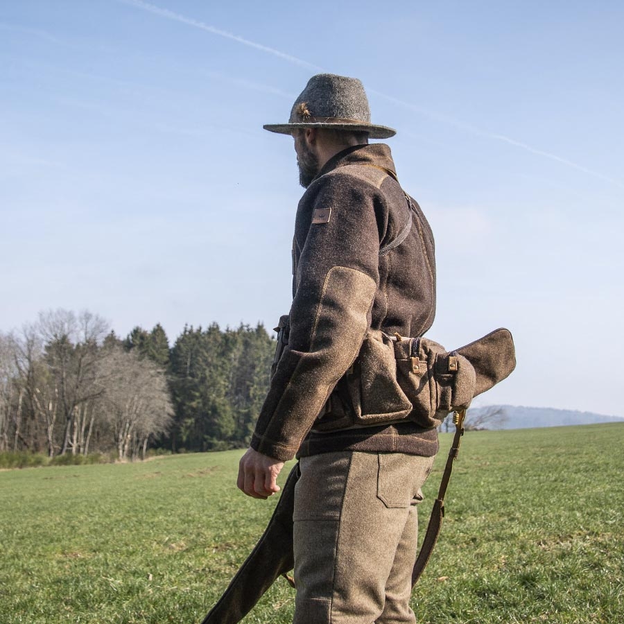 - vielseitig einsetzbare Jagdtasche aus Loden und Filz