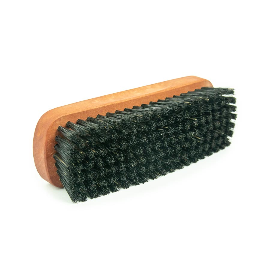 Die Bürste wird ebenfalls aus Naturborste und Birnbaumholz gefertigt und erfüllt Ihren Zweck ebenso gut wie das noble Hornmodell.