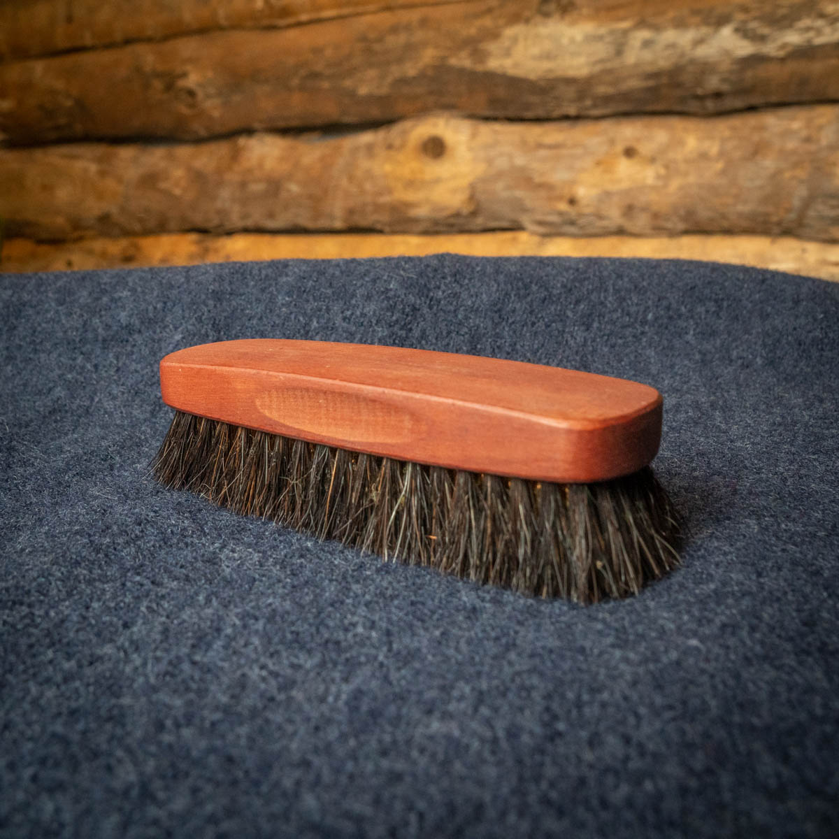 Loden ist sehr pflegeleicht. Die meisten natürlichen Verschmutzungen lassen sich leicht ausbürsten und ein Wäsche ist in vielen Fällen nicht nötig. Sehr gut geht das natürlich mit einer dafür vorgesehenen Kleiderbürste. Neben der Edel-Variante, die extra für uns in England aus Schwarzwildborsten, Birnbaum und echtem Büffelhorn gefertigt wird, haben wir jetzt auch dieses schöne aber etwas schlichtere Modell im Programm.