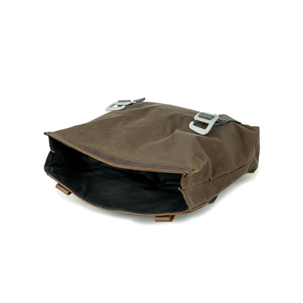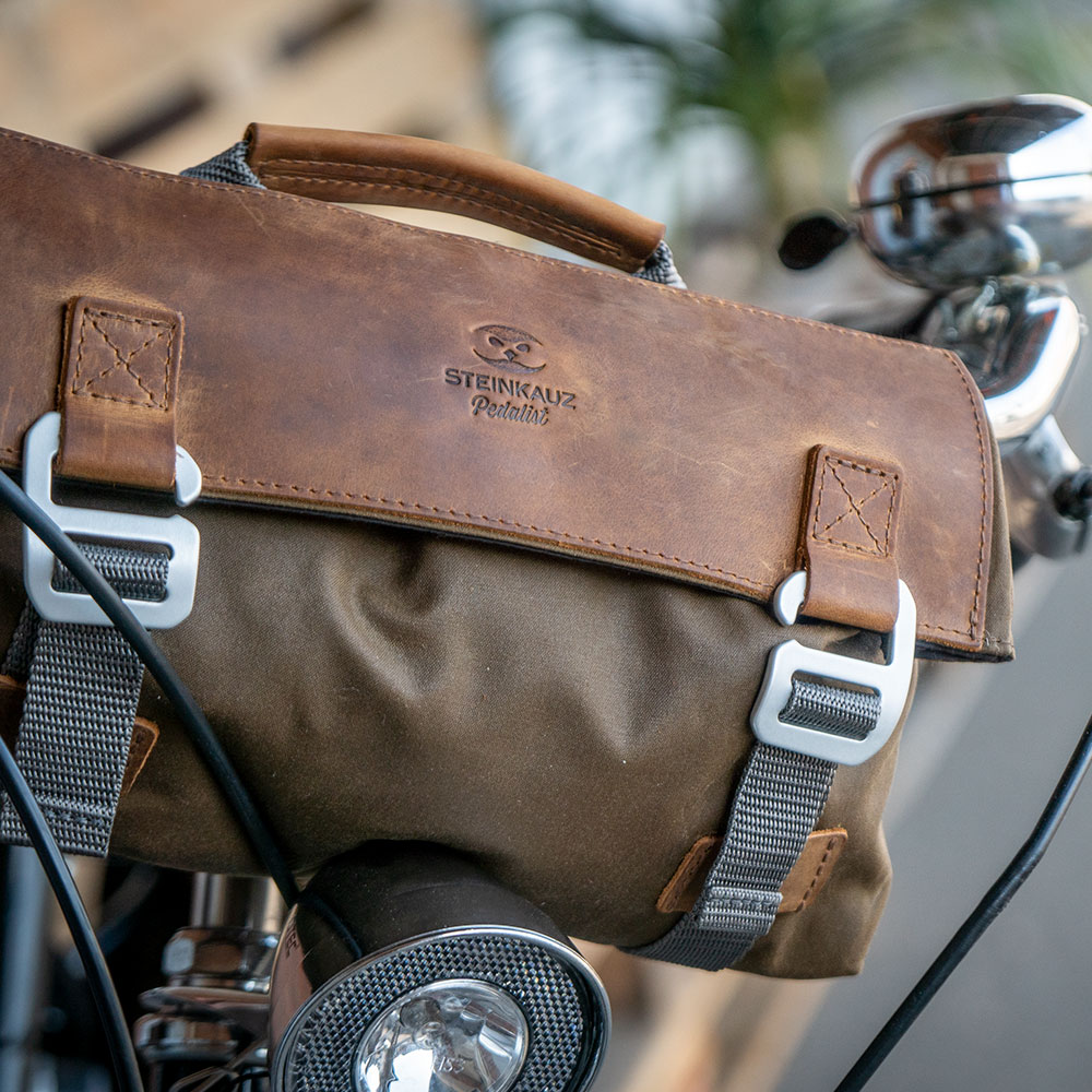 Die Taschen der PEDALIST-Kollektion bestehen hauptsächlich aus natürlichen Materialien. Als Obermaterial verwenden wir einen gewachsten, 8 oz schweren Waxcotton aus Baumwolle, um Wasser und Schmutz besser abzuwehren. Unser robustes Fettnubukleder bildet mit dem Stoff und den Aluminiumverschlüssen einen sehr wertigen Materialmix.Die Materialien sind übrigens pflegeleicht: Das Leder muss nur ganz selten mal leicht nachgefettet werden, wenn es durch Wind und Wetter stark beansprucht wurde und der Waxcotton kann einfach nachgewachst werden, um seine Schutzfunktion zu erneuern.
