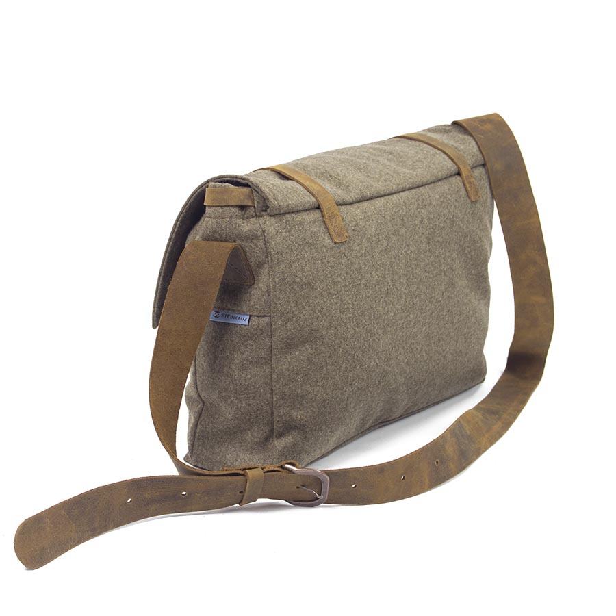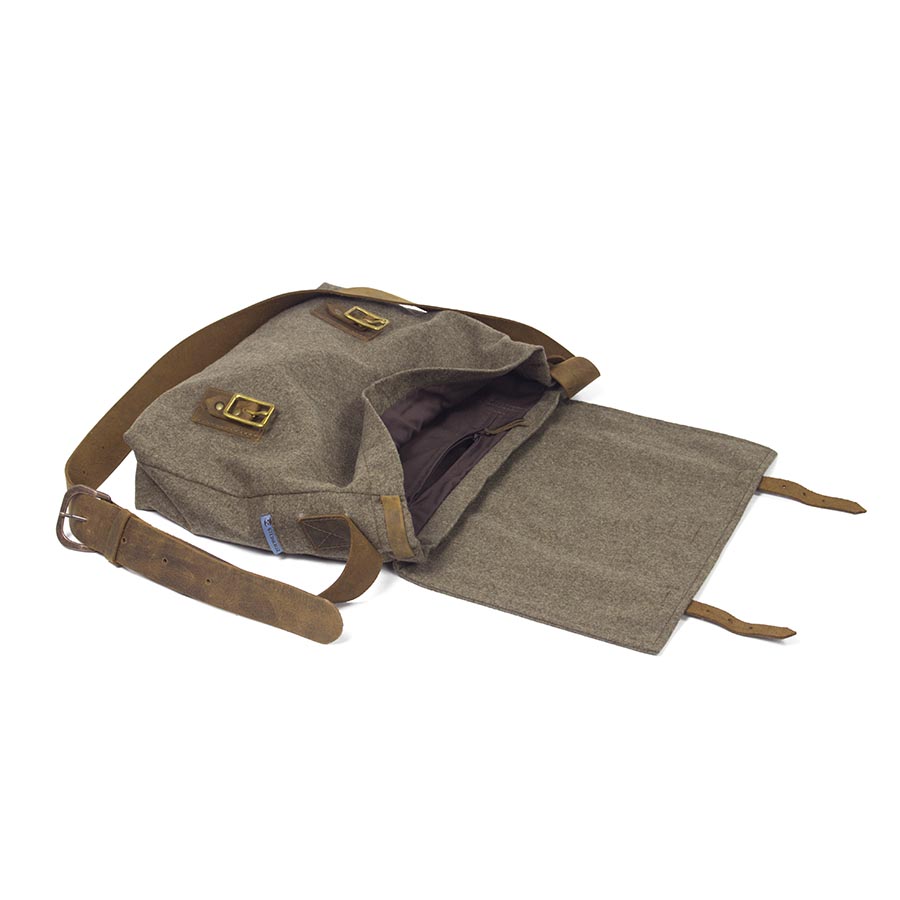 Umhängetasche aus hochwertigem Loden und Leder. Loden aus 100% Schurwolle, Stoffstärke 580g/m