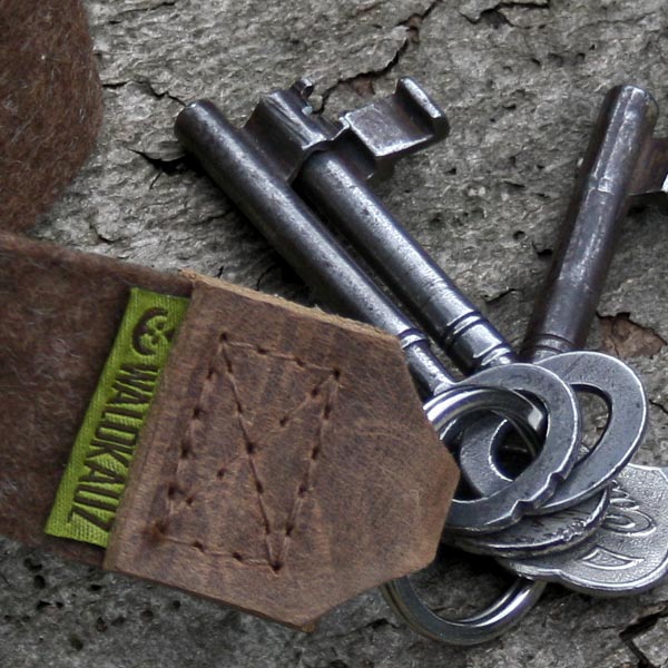Für Naturburschen: Unser Filz-Schlüsselanhänger ist nicht nur ein praktisches und schönes Anhängsel für den Kanzel- oder Jagdhüttenschlüssel, sondern macht auch am heimischen Hausschlüsselbund oder Autoschlüssel eine gute Figur. Vom eigenen Namen über kluge Sprüche bis hin zu den skurilsten Wortklaubereien gibt es nichts, was heute nicht auf einen Filz-Schlüsselanhänger gedruckt wird. Wir bleiben auf dem Boden, lassen den schönen Filz einfach Filz sein und machen allein mit unserem Label eine klare Aussage: WALDKAUZ Gefertigt wird der Schlüsselanhänger aus reinem, naturbraunem Wollfilz, kombiniert mit einem Abschluss aus Nubukleder, der den Schlüsselring hält.