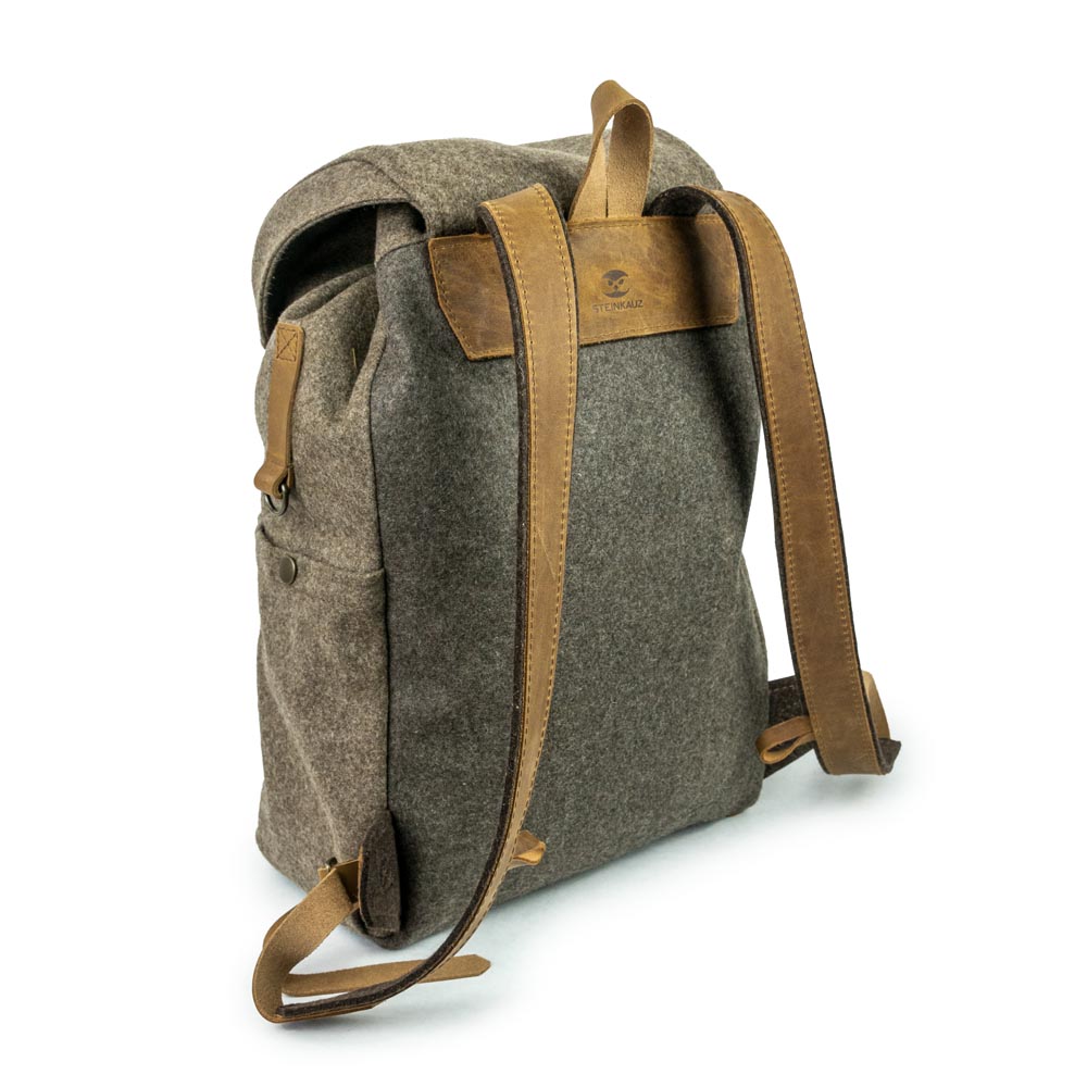 Der Filz aus deutscher Produktion wird ebenfalls aus Schafwolle hergestellt und kommt bei diesem Rucksack als Polsterung für die Trageriemen zum Einsatz.